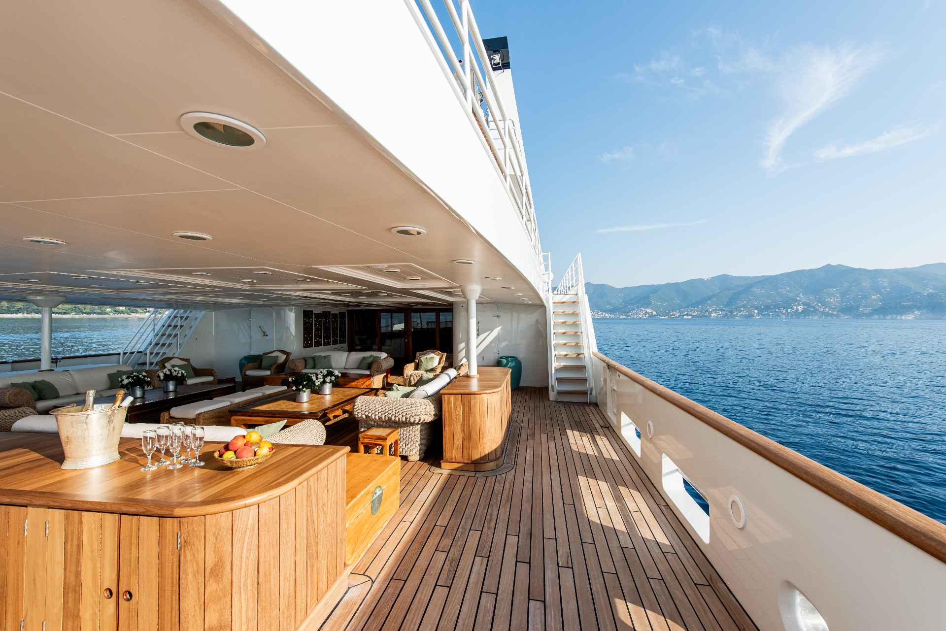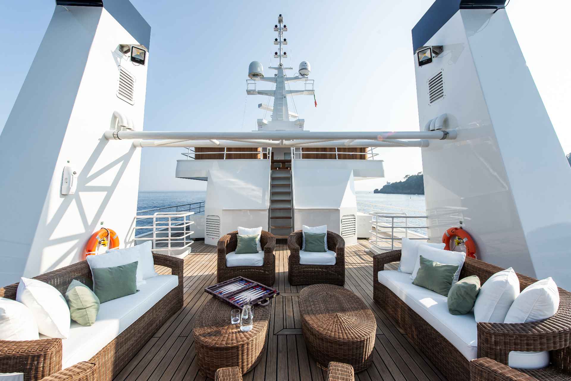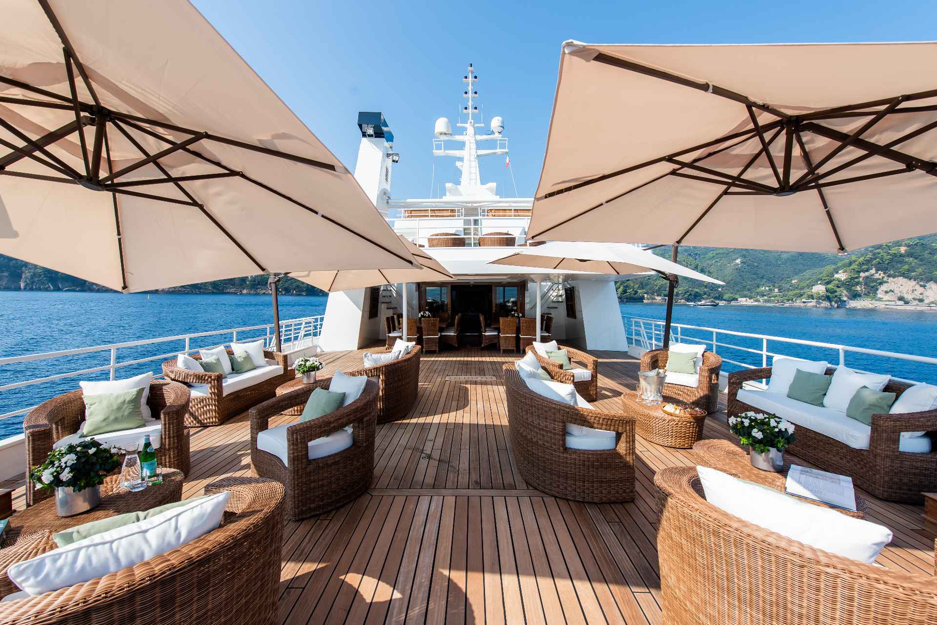 BLEU DE NIMES offers the ultimate luxury charter experience. Her excellent amenities such as the two deck Jacuzzis, massage room and gym set her apart from the rest, and her vast accommodation capacity makes her perfect for charters with large groups of friends and family.
