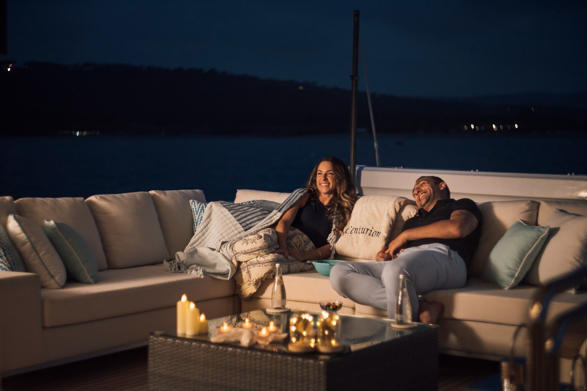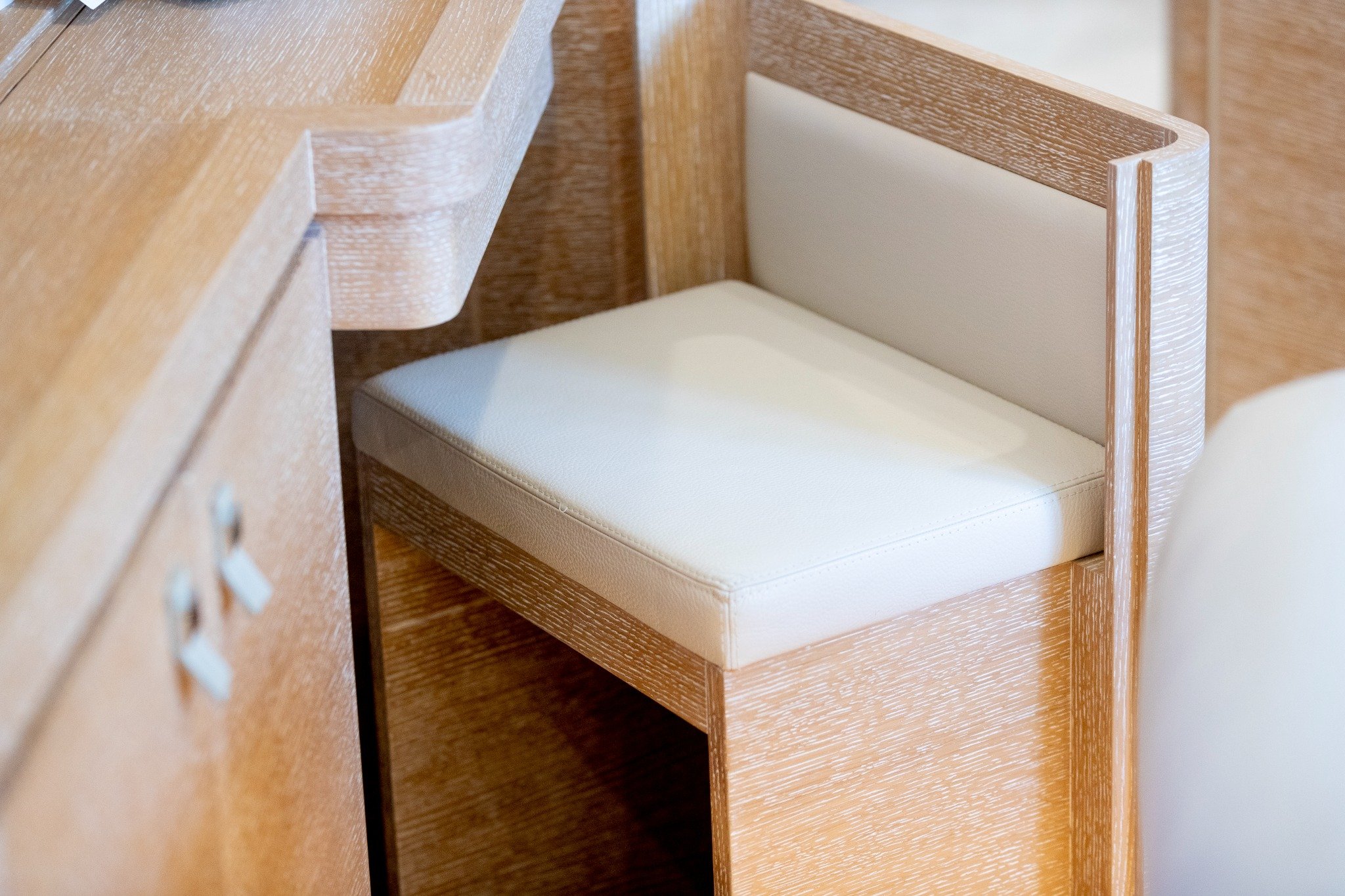 Stylish and modern, CENTURION’s master suite is located forward on the main deck. Beautifully finished with an ultra-luxurious vibe, the master suite features a TV, built-in storage, walk-in wardrobe, study, plus a spa-inspired bathroom equipped with a steam shower.