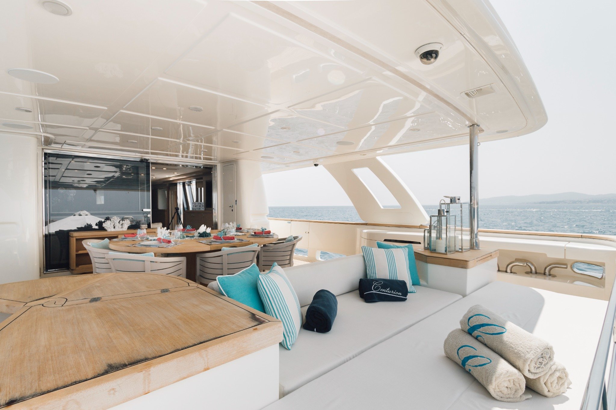CENTURION is based in the South of France, offering easy access to some of the most breathtaking destinations in the Mediterranean. From the sun-drenched beaches of the French Riviera to the historic ports of Italy and beyond, this yacht offers endless opportunities for exploration and adventure. Whether you’re seeking vibrant nightlife, secluded coves, or cultural treasures, CENTURION will provide an unforgettable charter experience.