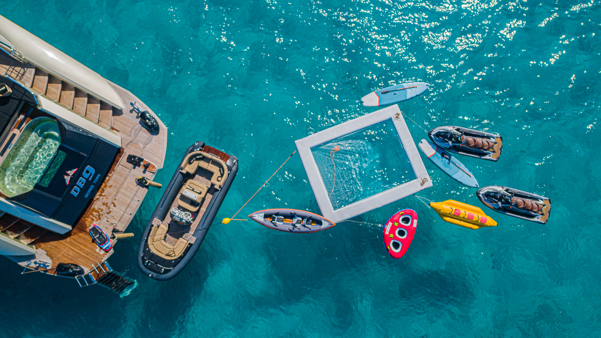 Charter DB9 and you’ll get a superyacht with a stylish interior, plenty of outdoor areas to enjoy, and an overflowing toy box. Soak in the infinity-edge Jacuzzi or swim in her 8m pool, lounge on her sundeck or watch a movie at her open-air cinema, dine al fresco or at her large polished dining table.