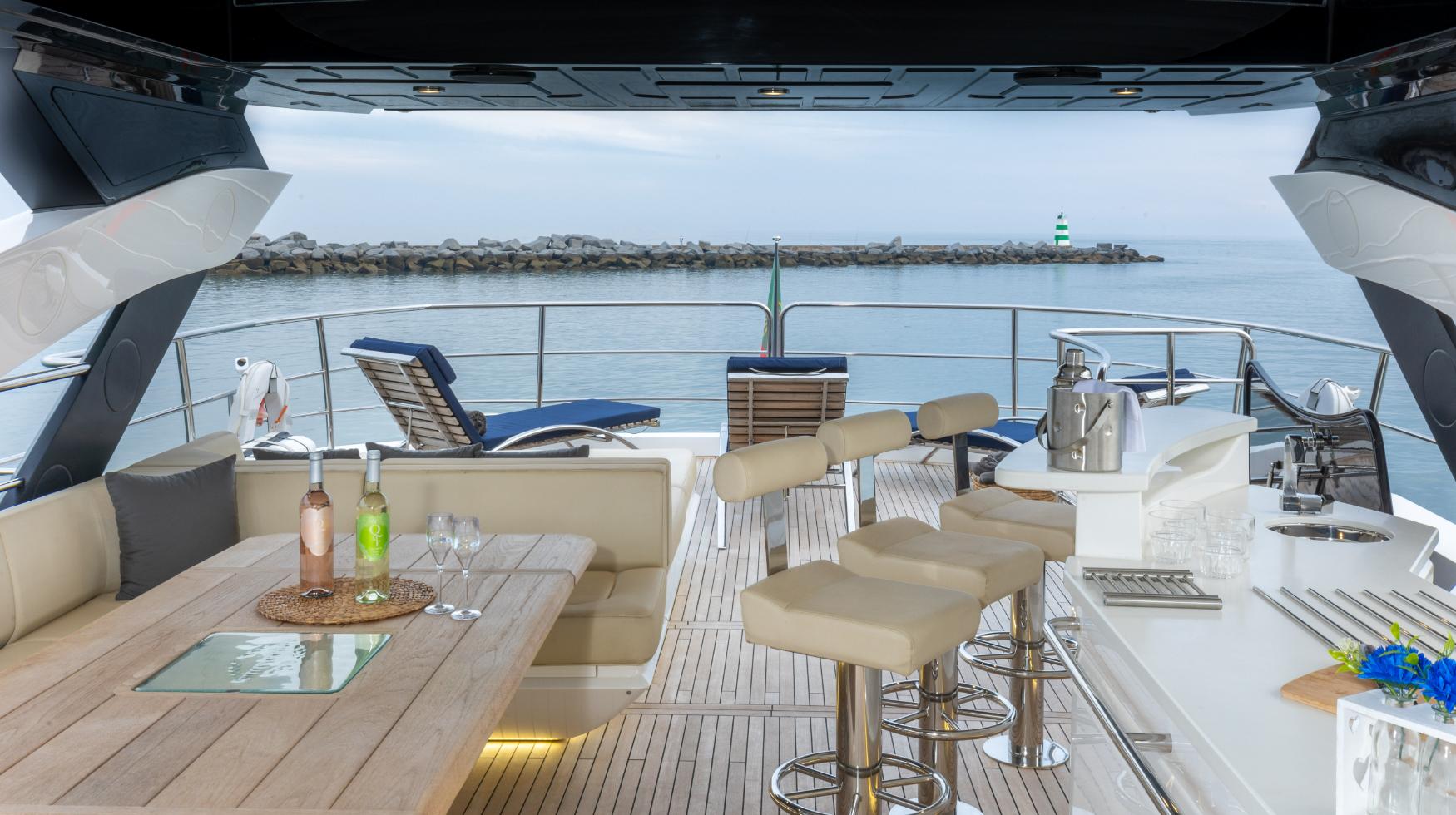 Delivered in 2015, STARDUST OF MARY was refitted in 2020 and 2023, and features a spacious open-plan interior with four luxurious ensuite staterooms. Her expansive outdoor living areas include an alfresco dining area on the main deck aft, a triple sunpad in the bow plus a fabulous lounge and bar up on the flybridge.