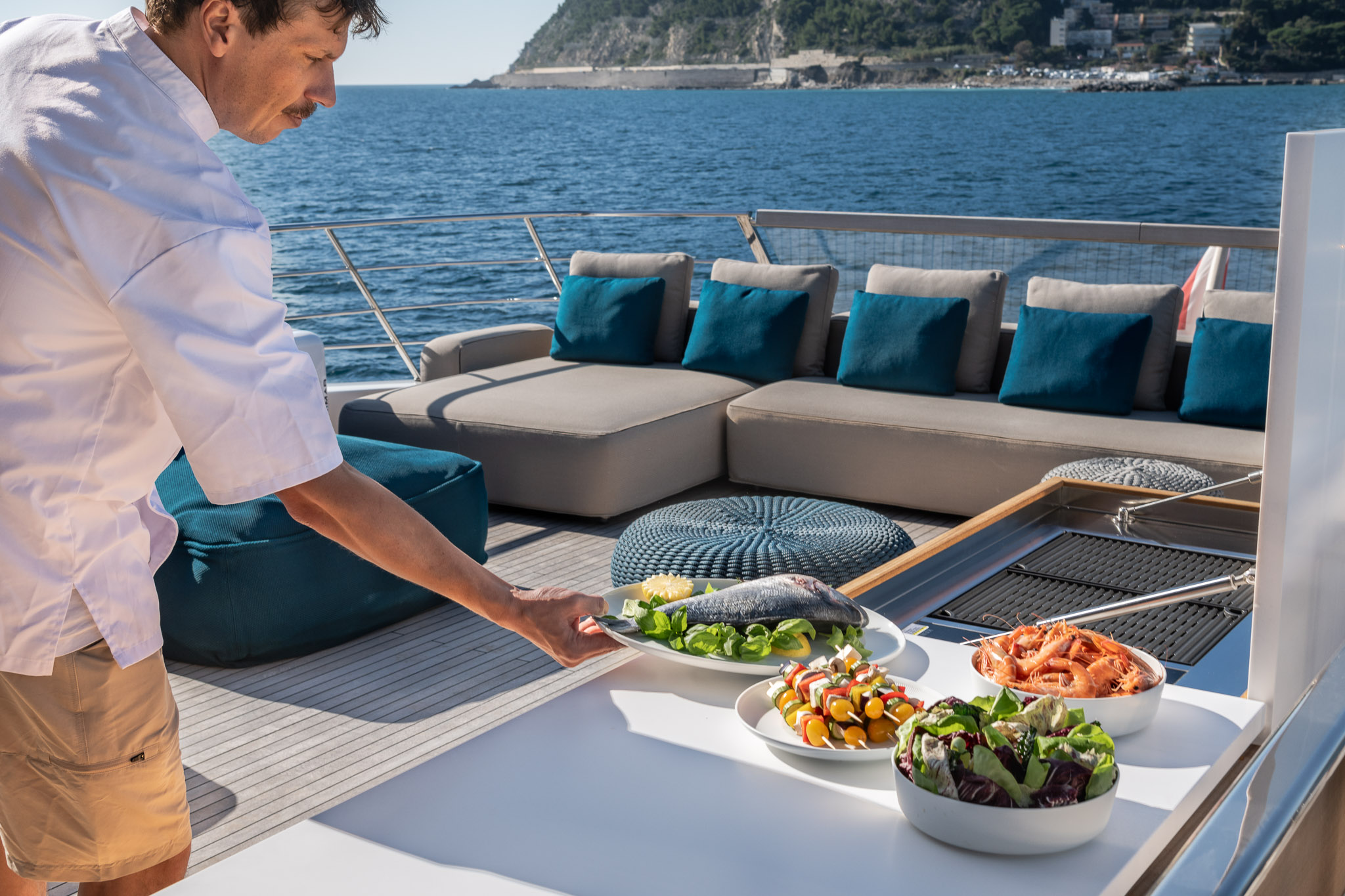 Whether berthed in a marina or cruising the Mediterranean, her seven skilled and attentive crew members make sure that guests are well-cared for. Guests will be spoilt with creative dishes in any of your favourite cuisine styles, cooked to perfection by the dedicated onboard chef.