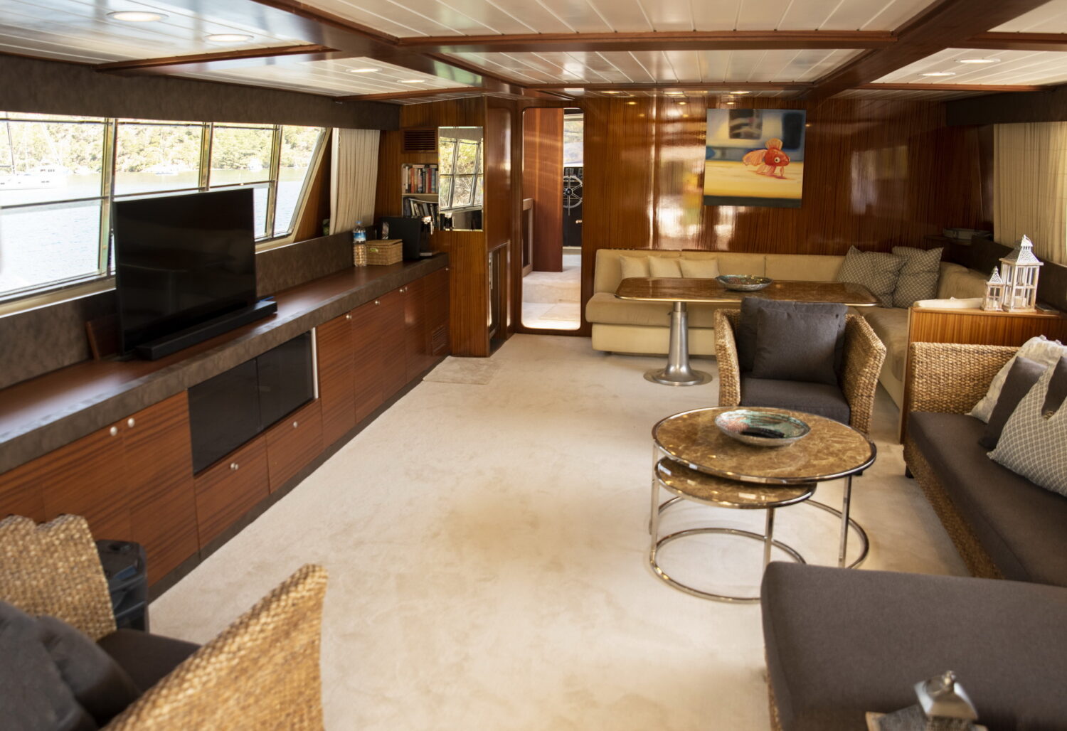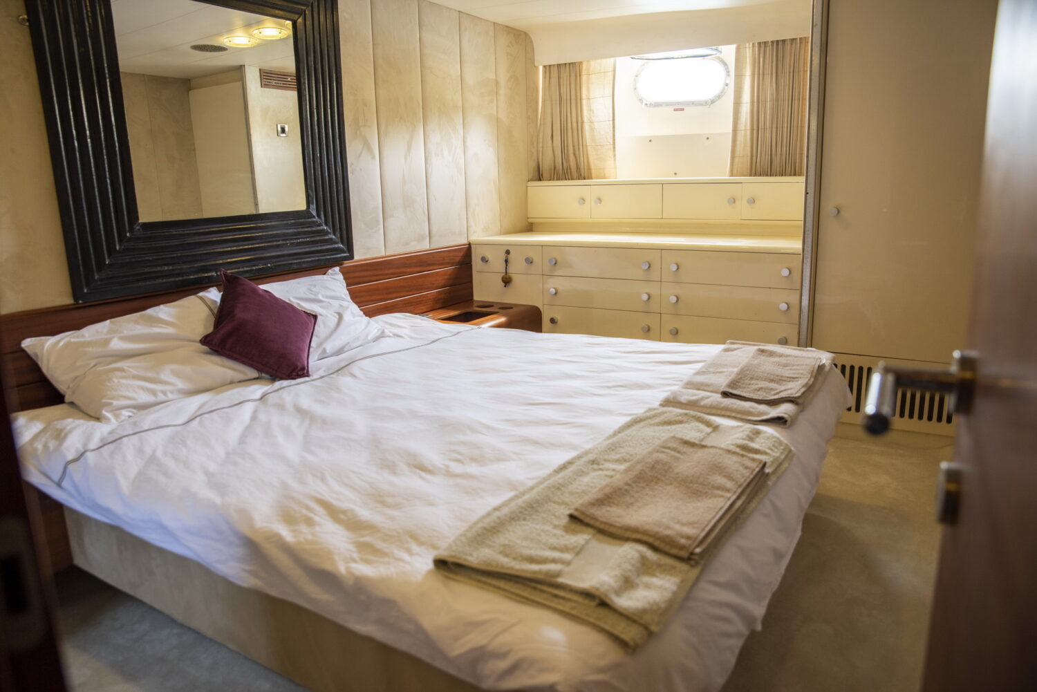 ENIGMA BLUE has been kept exclusively for private use since she left the shipyard in 1975 and as a result, is in excellent condition. Whilst she has not yet been used for charter there is nothing to say she wouldn’t be a tremendously successful charter yacht. With room for 8 guests in 4 cabins, ENIGMA BLUE would be an excellent option for prospective charter clients. Each cabin is finished in white creating an aura of decadence on board, which is supported by each room having its own finely finished ensuite.