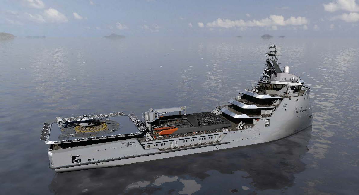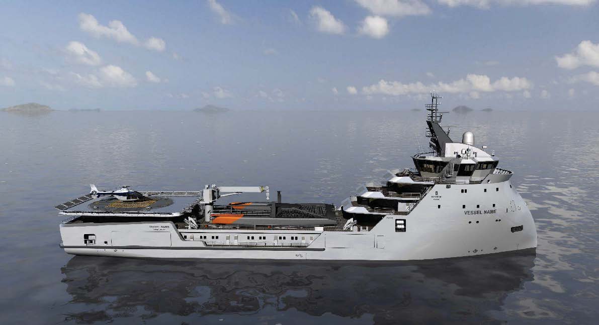 The classic ULSTEIN X-BOW provides many advantages to this yacht. The hull design, working in combination with a diesel-electric propulsion system, has ensured that this boat performs its best with regard to fuel consumption, sea keeping, station keeping and speed. In addition, in calm water, the low angles of entry and waterline length allow for a higher transit speed. Furthermore, when carrying pipes and other general cargo on the open deck, the fact that this boat does not have a bow flare helps to eliminate the bow impact and slamming in the foreship.