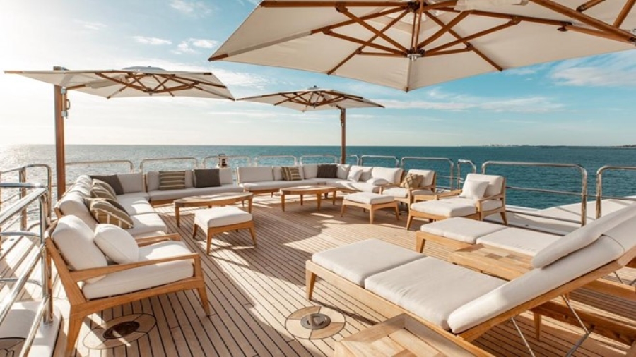 The sundeck can be accessed from either the central elevator or aft of the sky lounge. This is where you will find the raised helicopter deck, which can be transformed into a lounge/sunbathing area with loose outdoor furniture. This versatile space can be used for entertainment purposes or relaxation.