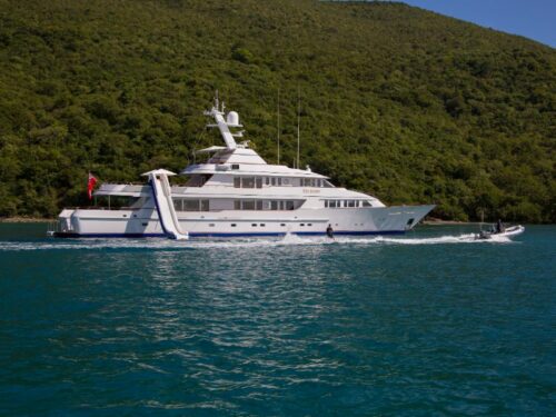 TELEOST. This highly sought-after family charter yacht will be cruising The Bahamas and the Caribbean over the winter. With her impressive collection of water toys, exploring the coral reefs of the Bahamas is made easy to ensure that the guests have the best experience onboard.  TELEOST has been extensively refurbished and upgraded by her owner to make her vast interior a modern classic and to ensure that this yacht remains an adventure yacht at heart.