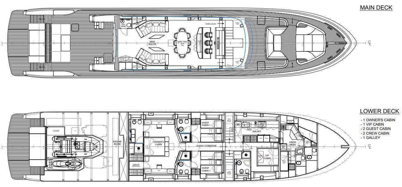 - 41-knot top speed with triple MAN V12 engines and MJP waterjets