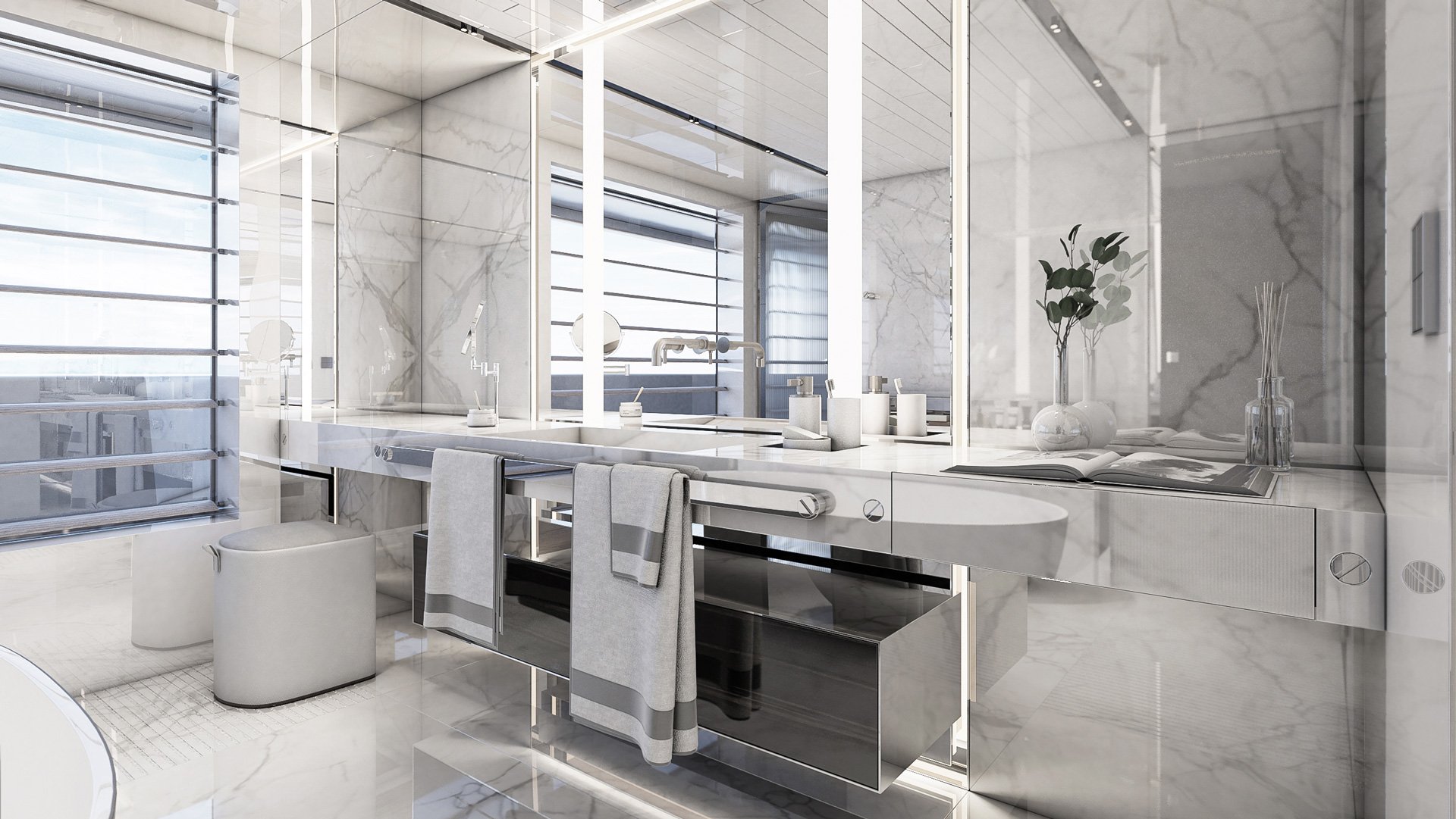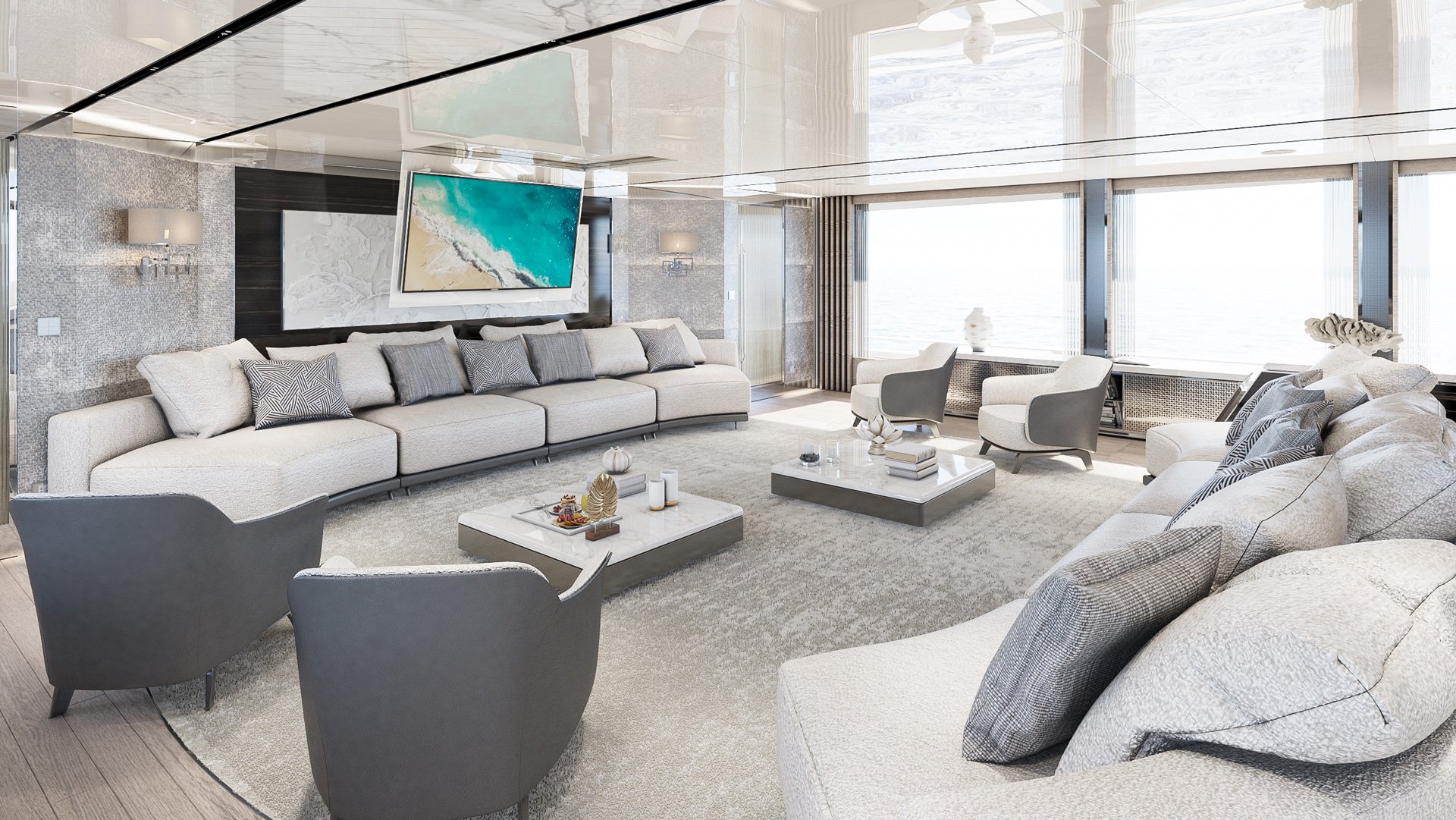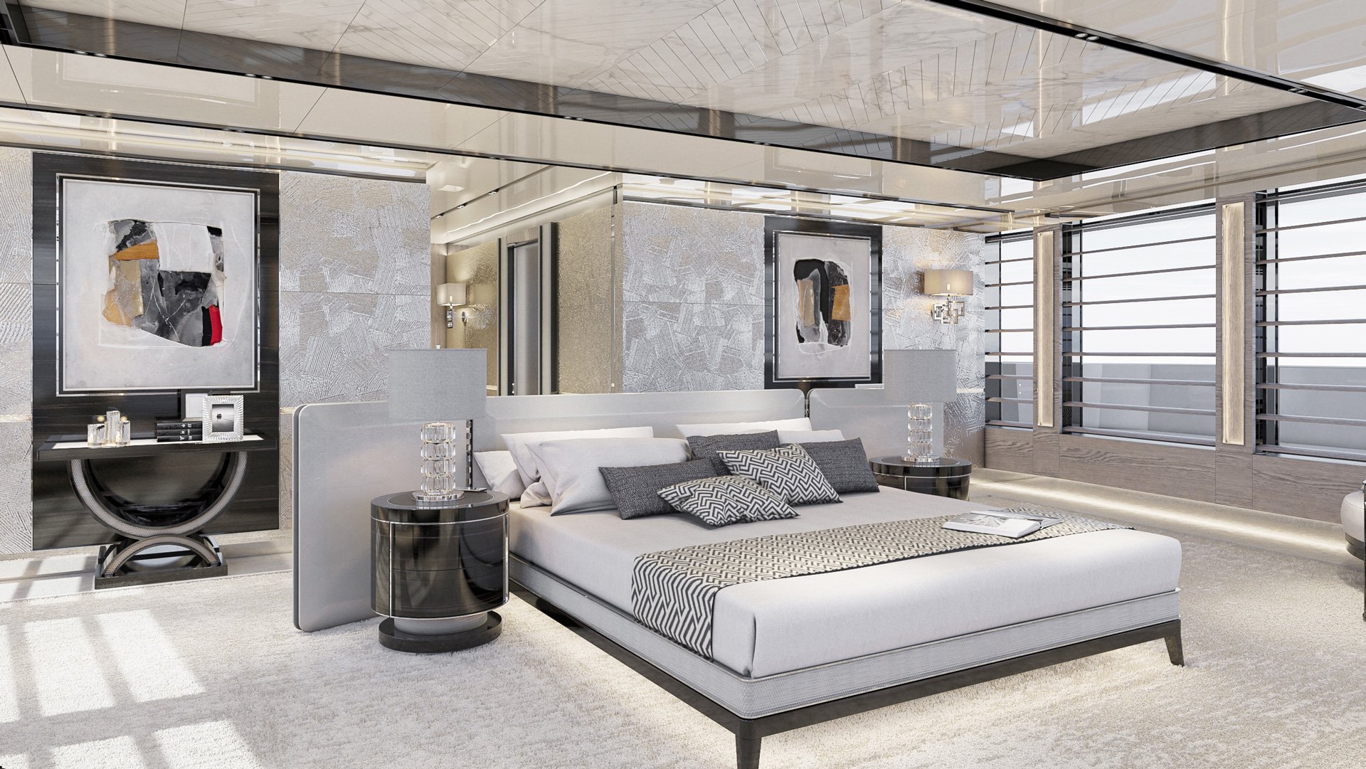 The BILGIN 243 features 9 staterooms including a 100-sqm forward-facing owner cabin, 4 VIP cabins, and 4 guest cabins. The upper deck is dedicated to the Owner and features a special terrace with a private jacuzzi.