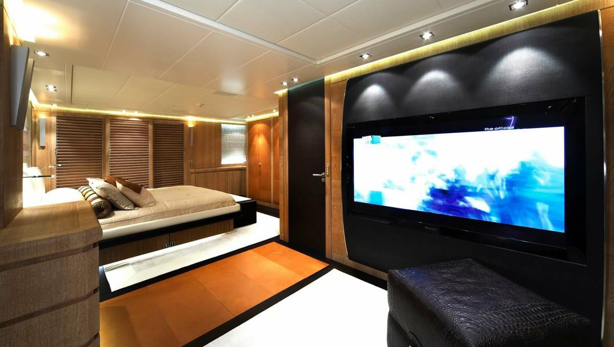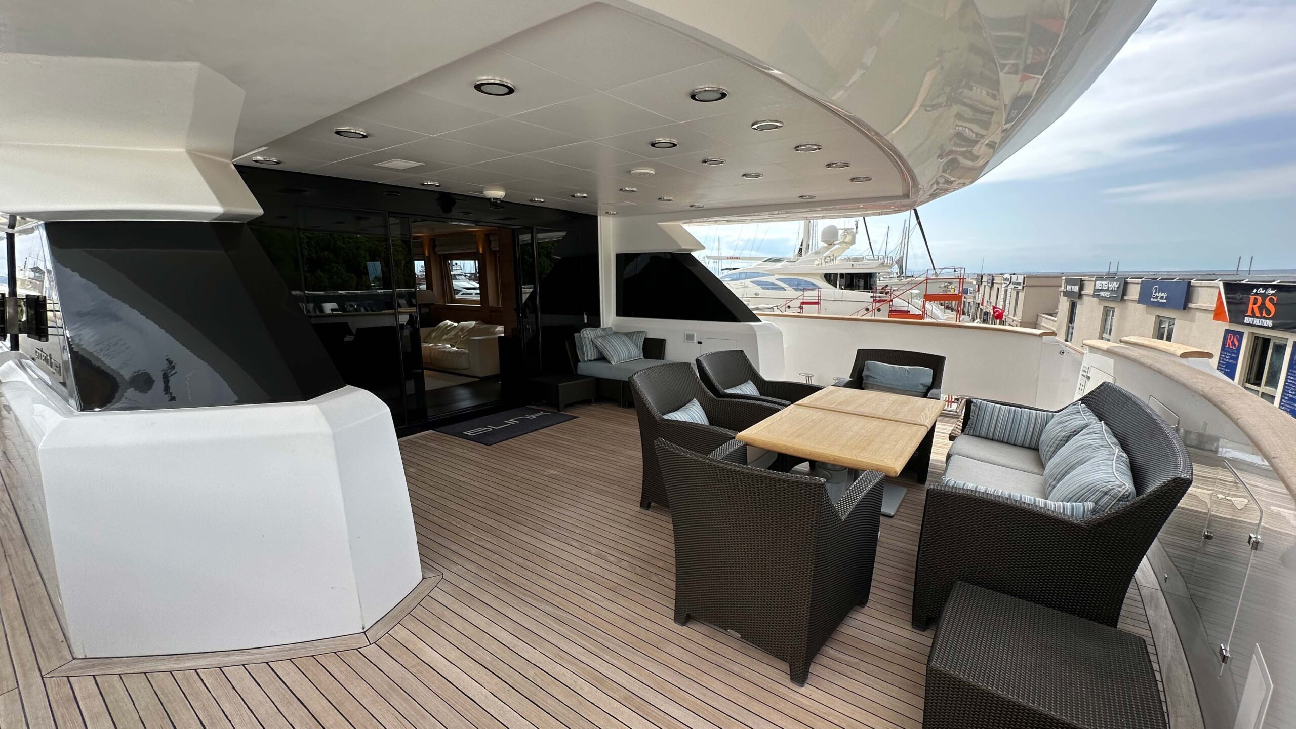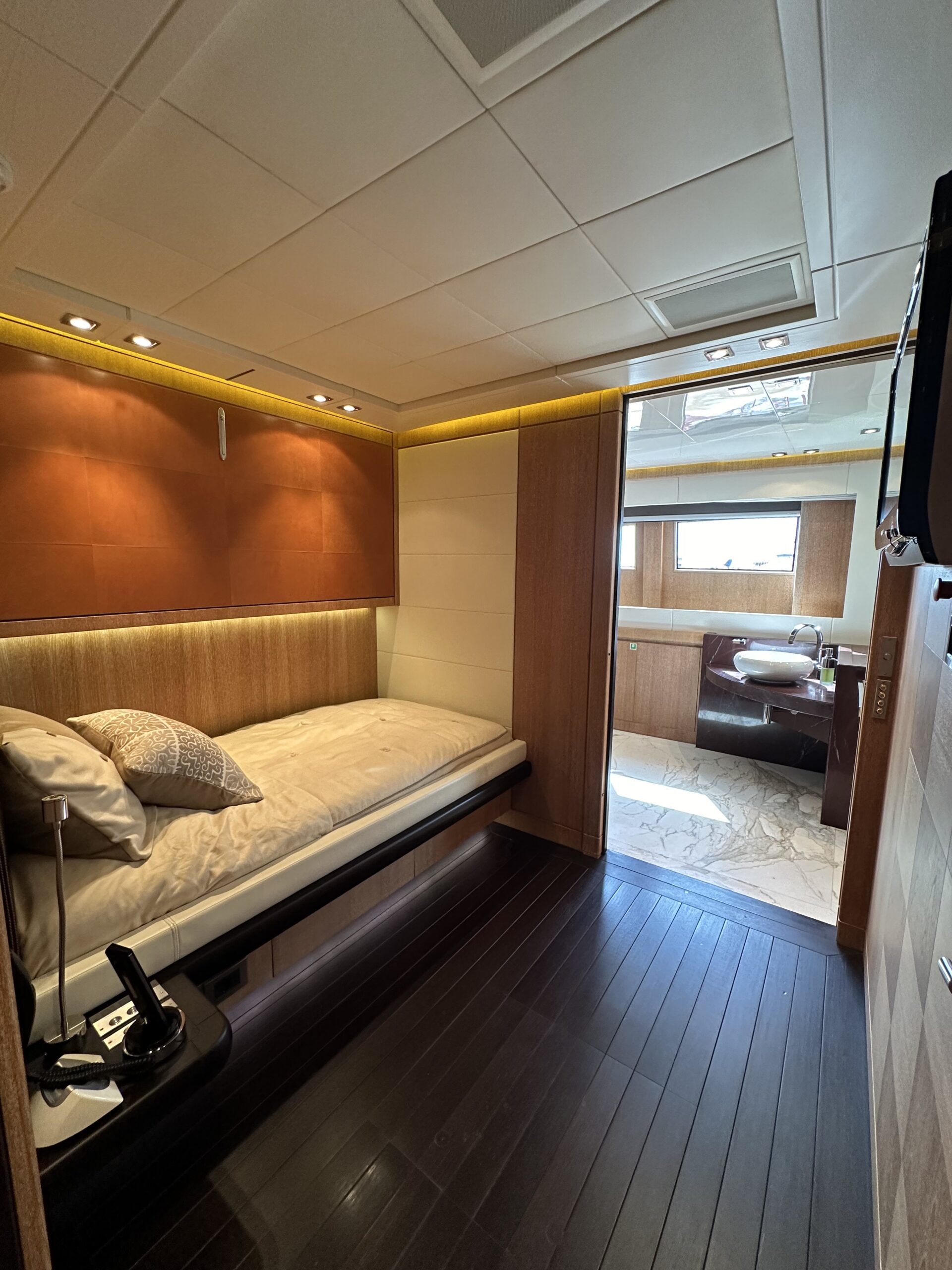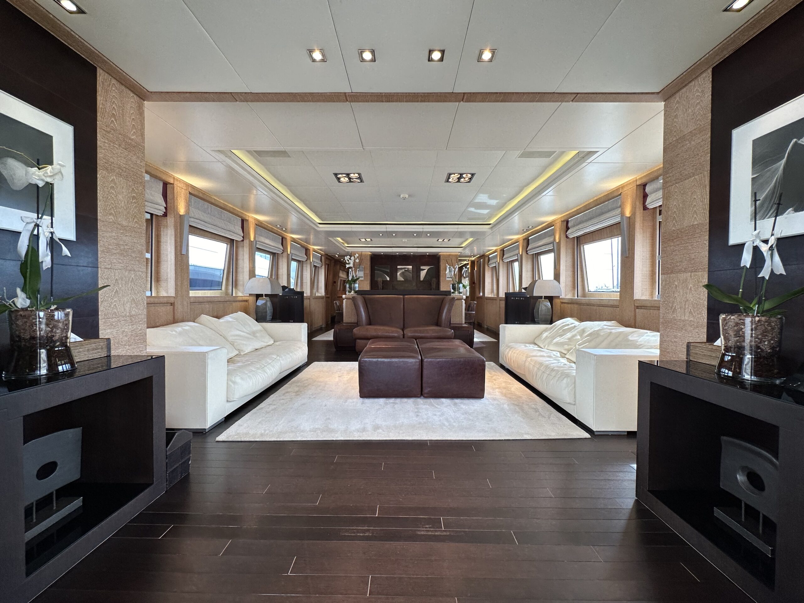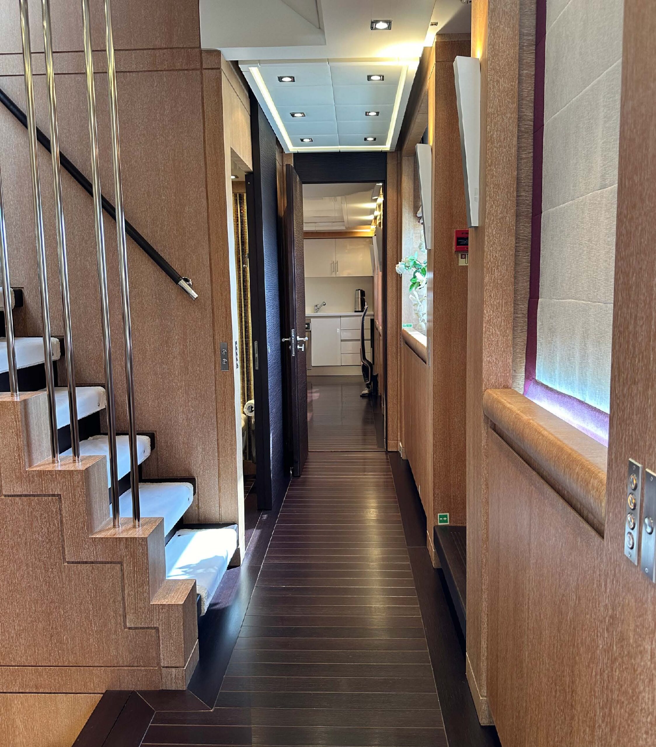 Yacht for sale BLINK features an elevator that connects the main deck to the sundeck, offering seamless movement between the yacht’s multiple living areas.