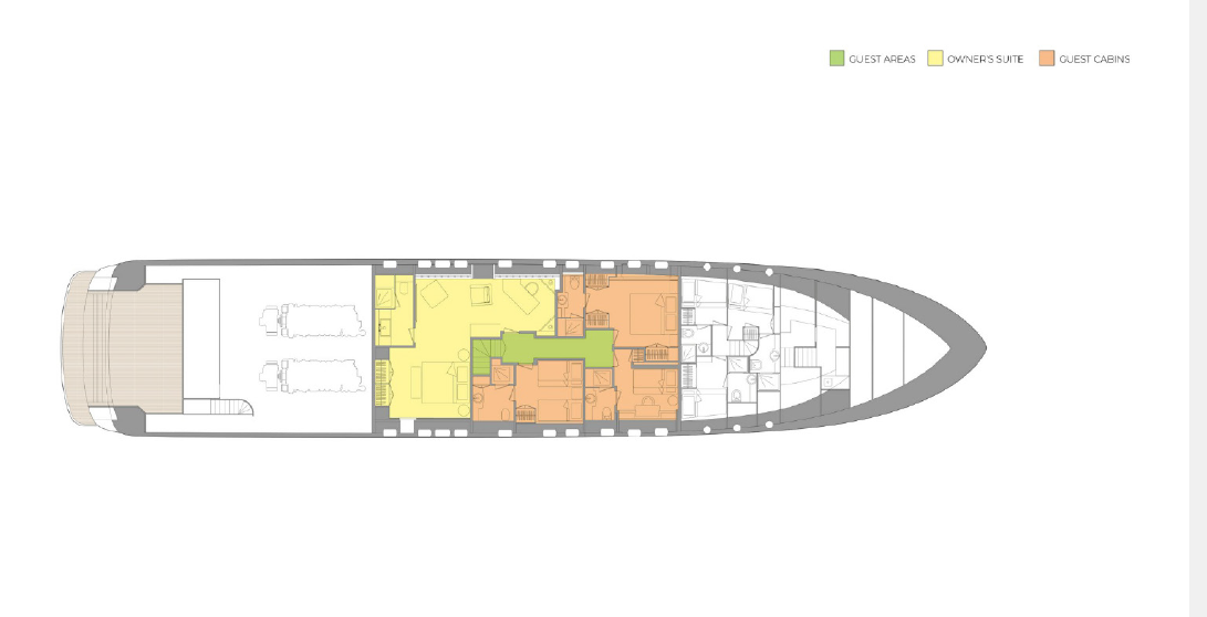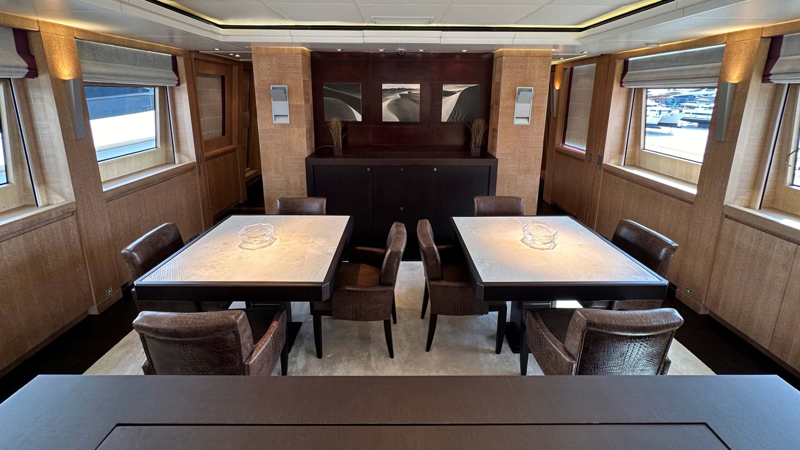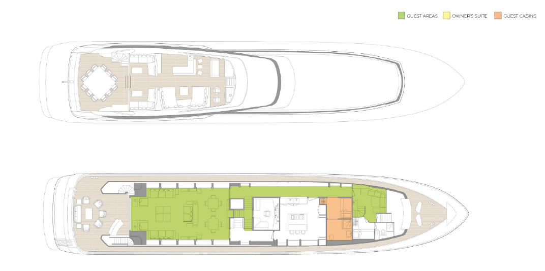 This rare feature, particularly on a yacht of this size, makes it easy for guests to enjoy everything the yacht has to offer, from the spacious sunbathing areas to panoramic ocean views.