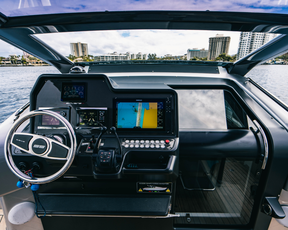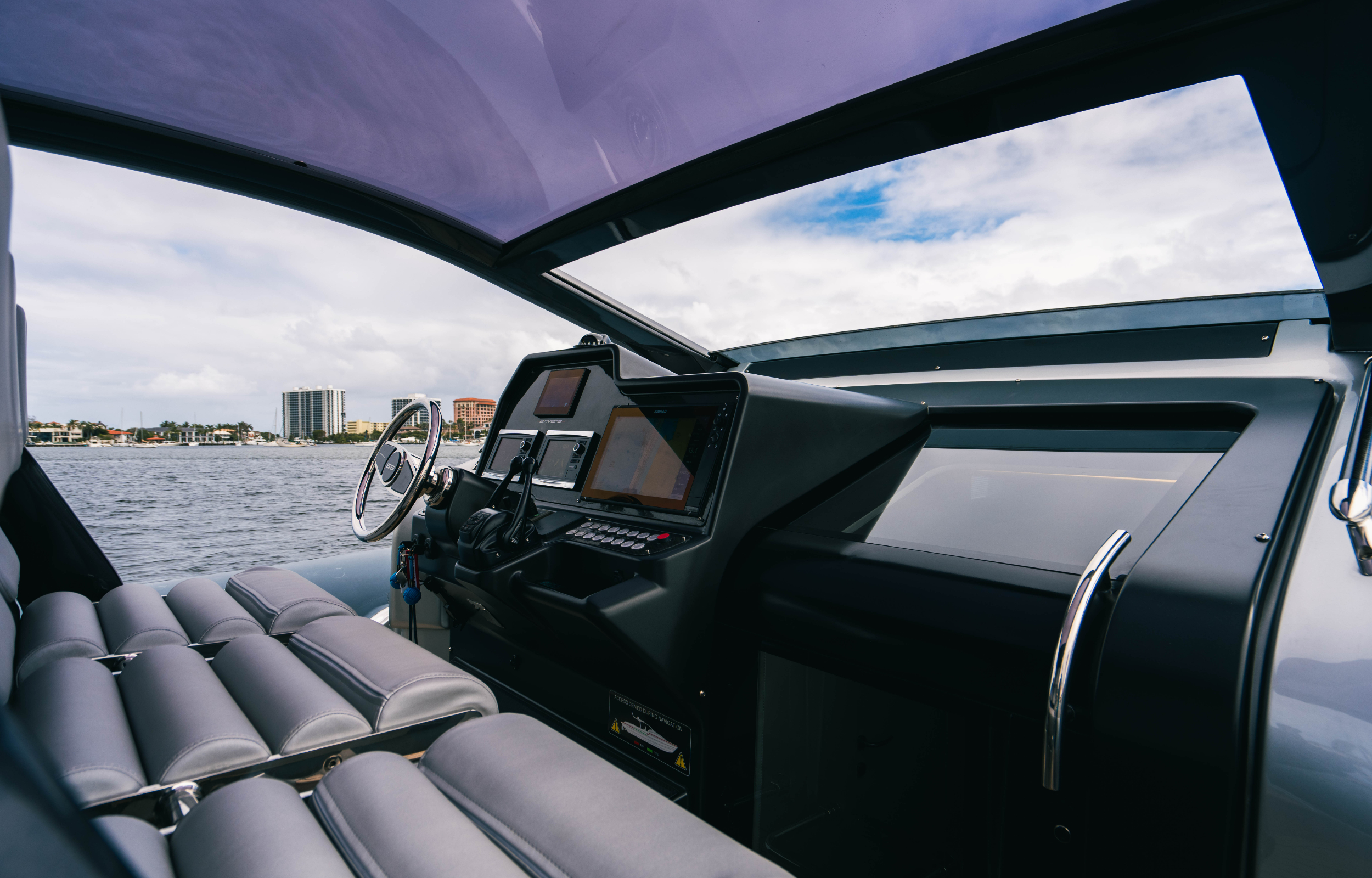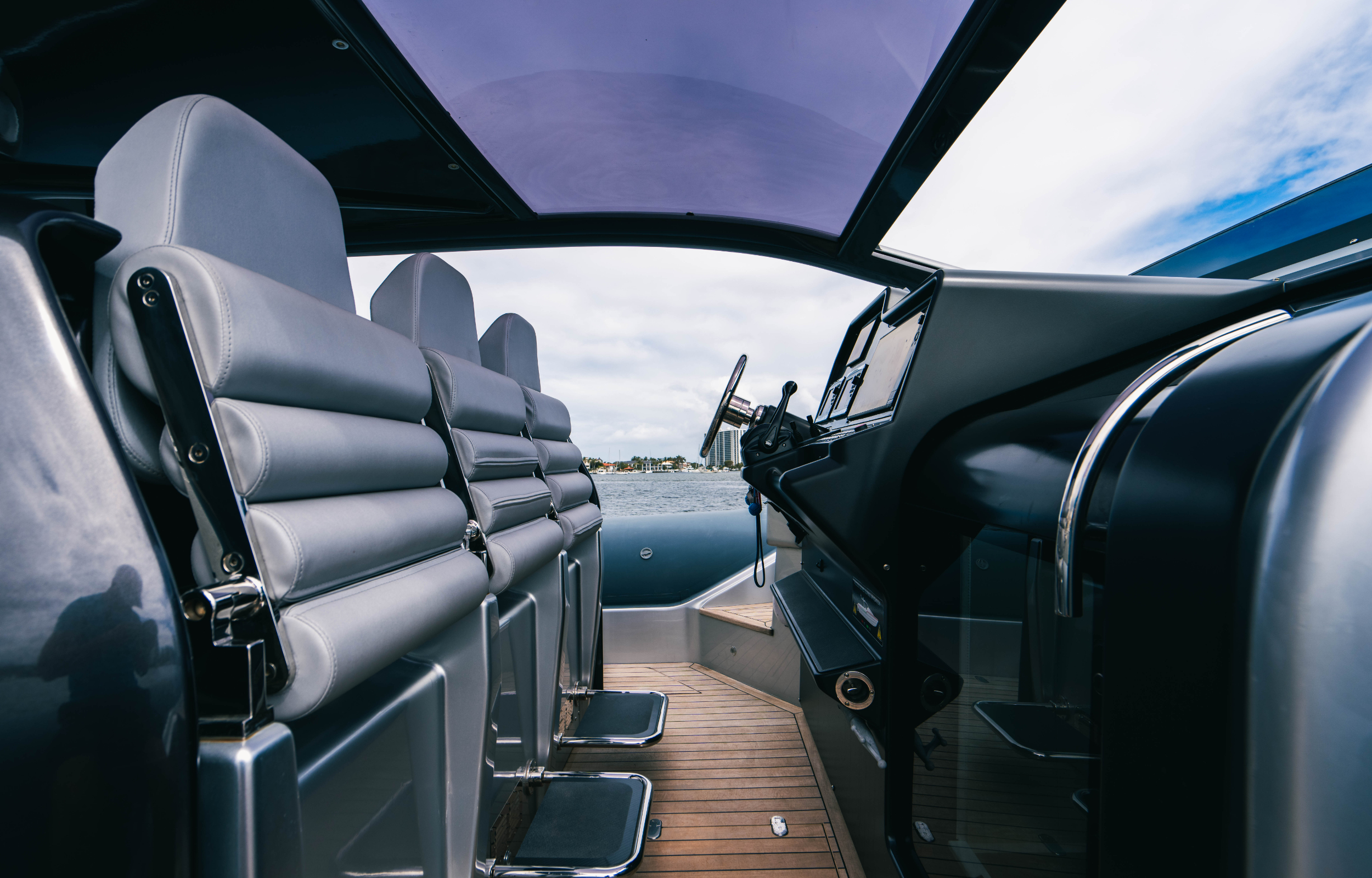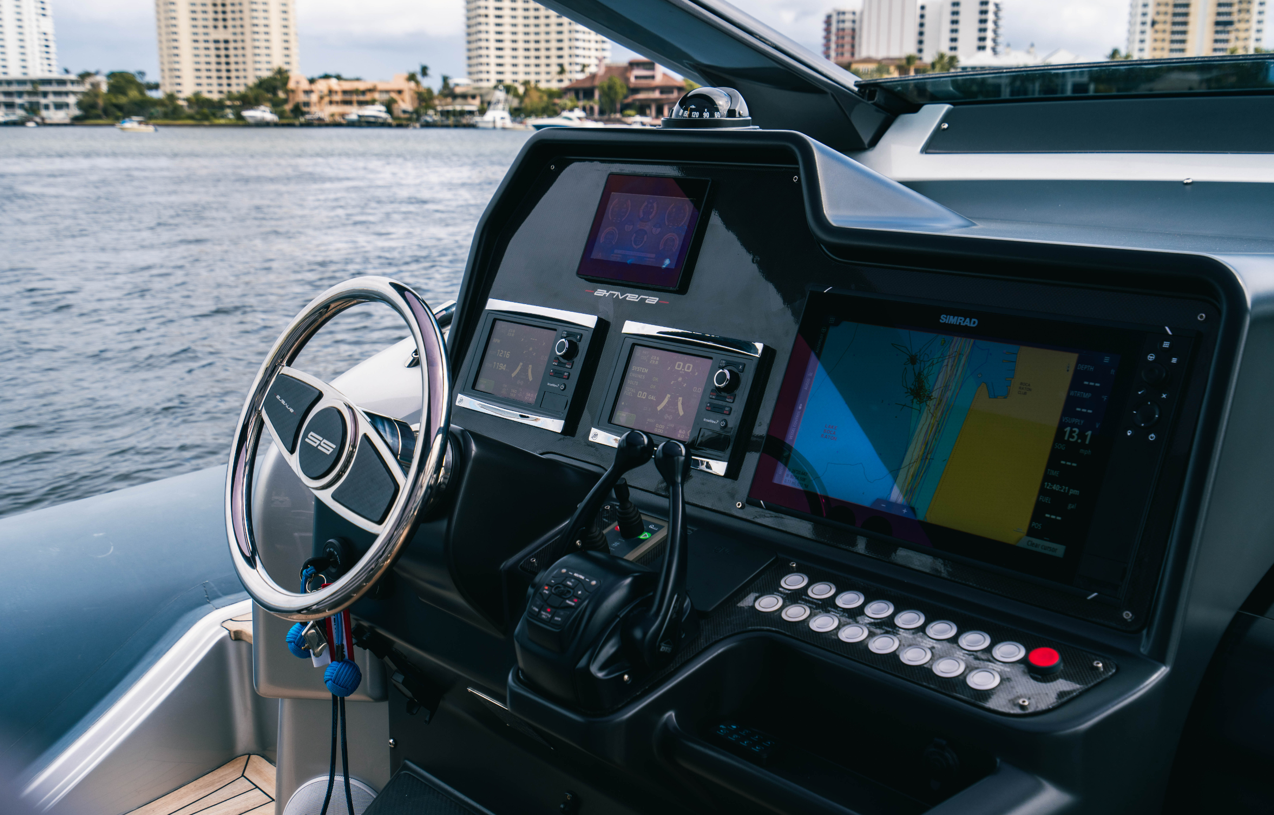 Two 12m risers display a winged profile, enclosing the cockpit cover, control deck, and deckhouse. This aerodynamic approach is echoed in the hull’s sleek hydrodynamic design. Combined with the double Cummins Diesel Engines (new in 2021 and serviced by Cummins authorized specialists), the Anvera CLOUD 9 Yacht for sale with SuperYachtsMonaco reaches exhilarating speeds of 48 knots (55mph or 88kph).