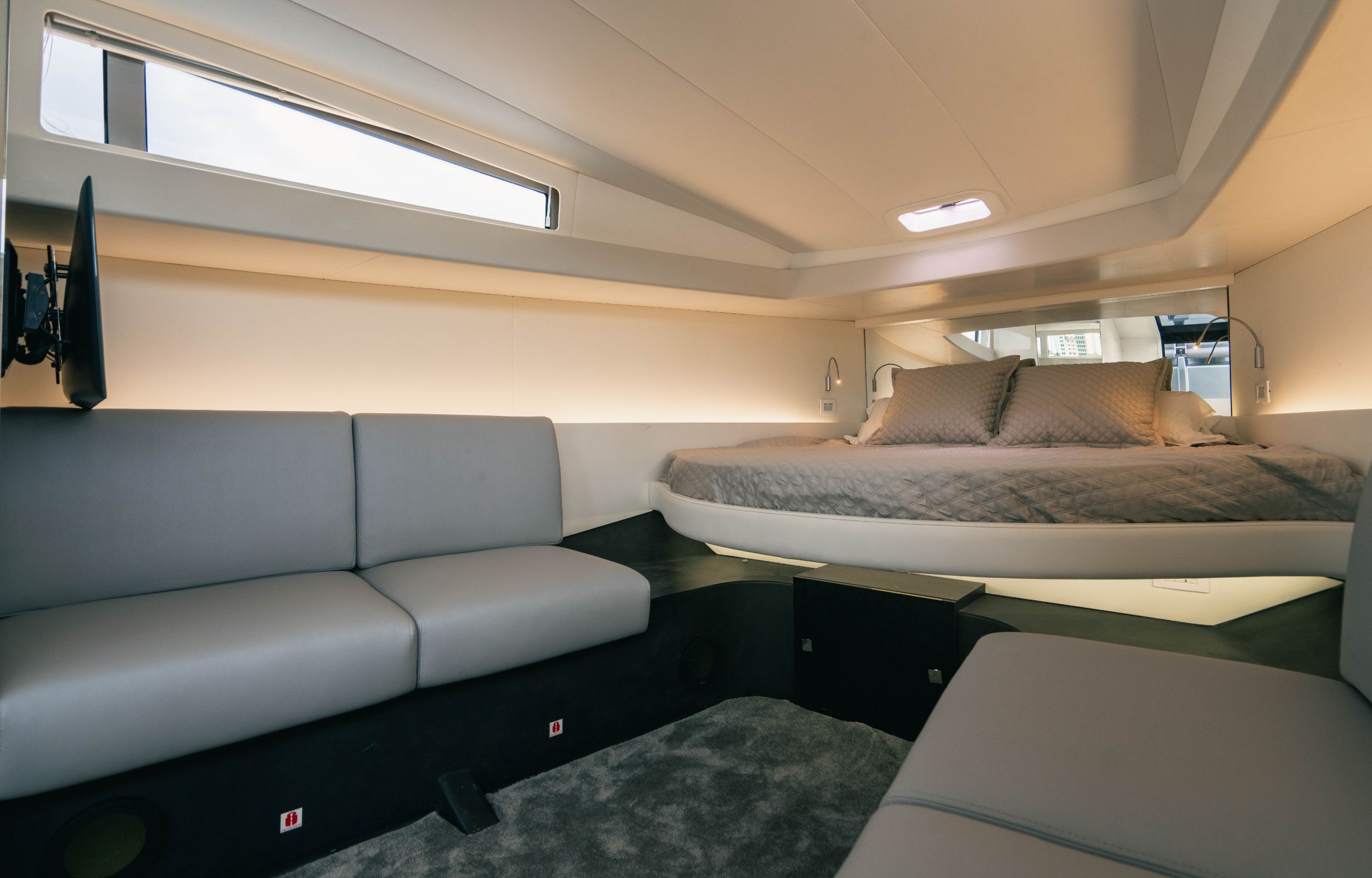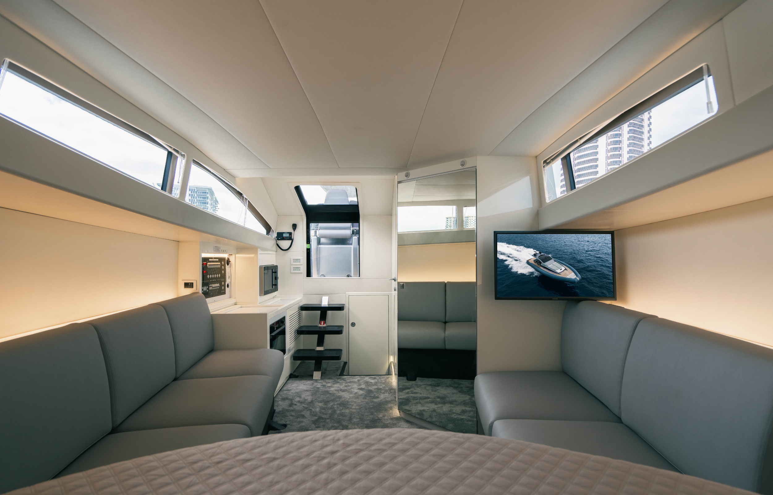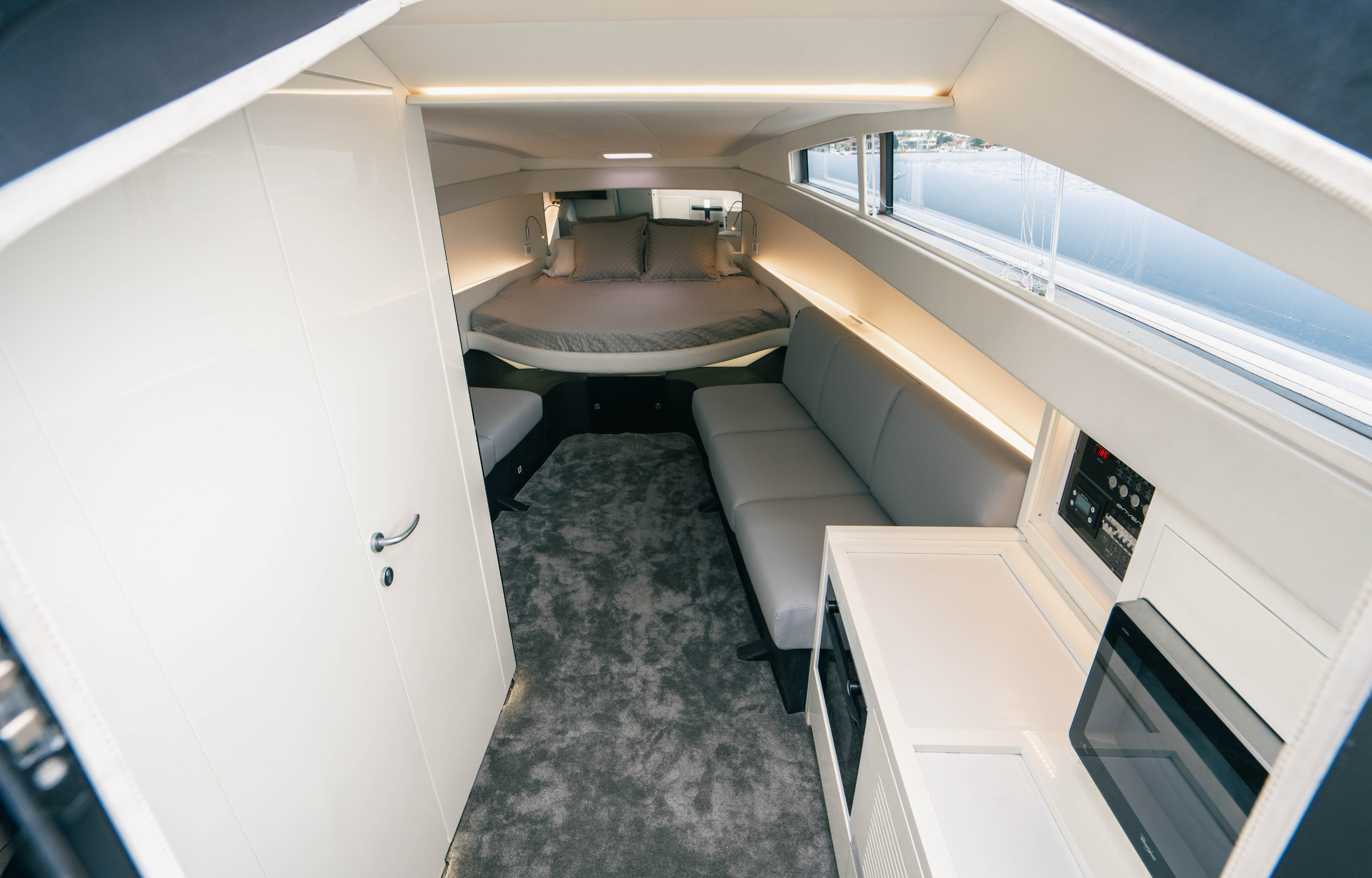 Anvera’s commitment to beautiful efficiency – and their aim for “your own private island in every corner of the sea” – continues into the interior of the day yacht.