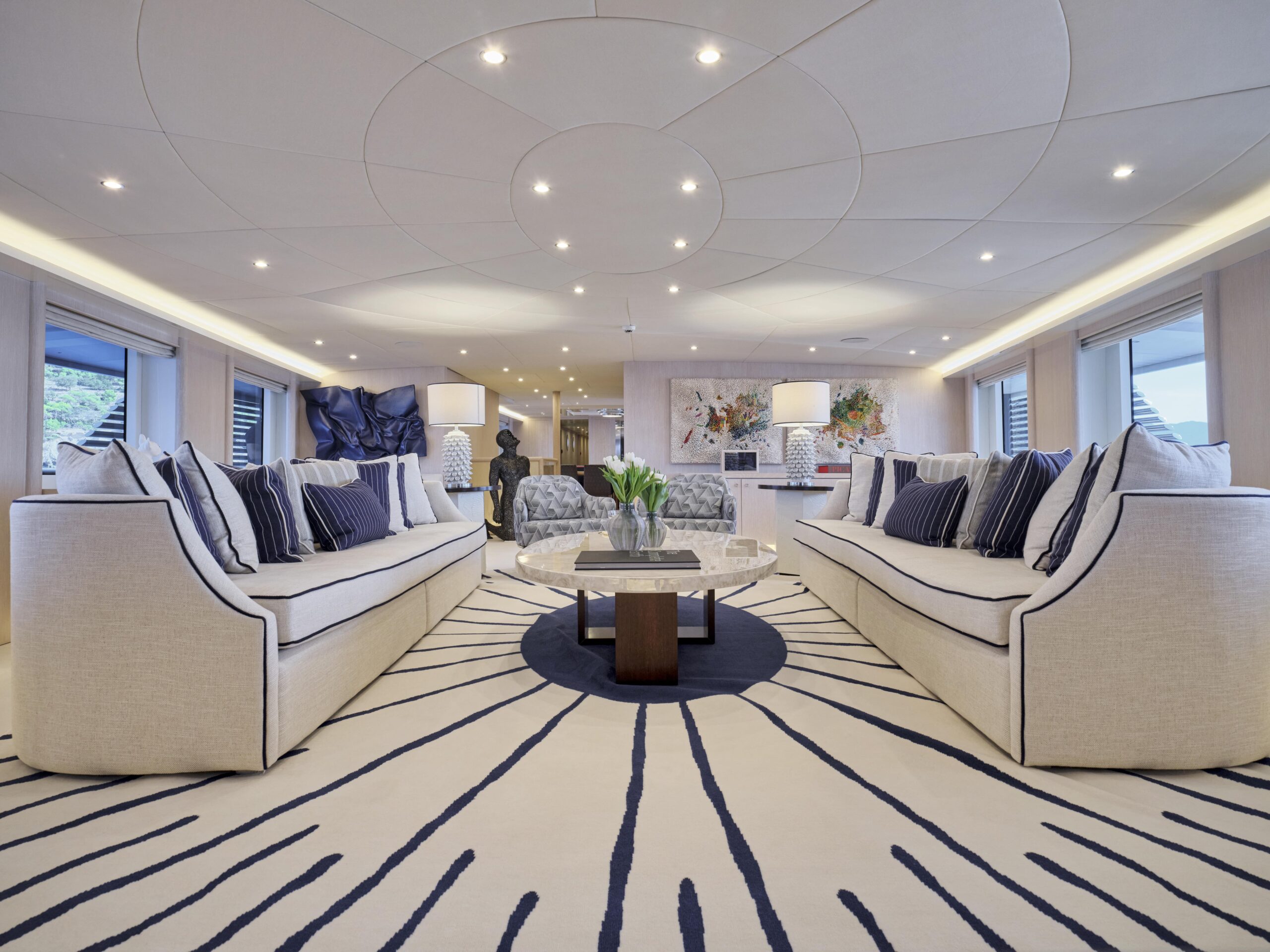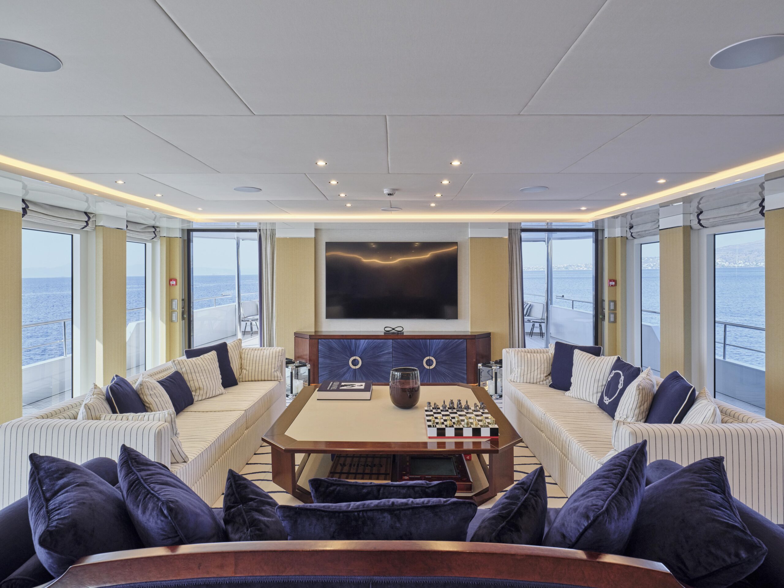 Moving indoors, OMNIA’s interior is light and open with interior design from UK-based H2 Yacht Design. Finished with a chic neutral colour palette, OMNIA features a vast full-beam salon, an elegant formal dining area, a cosy skylounge plus a wellness area with both a sauna and hammam for total onboard relaxation.