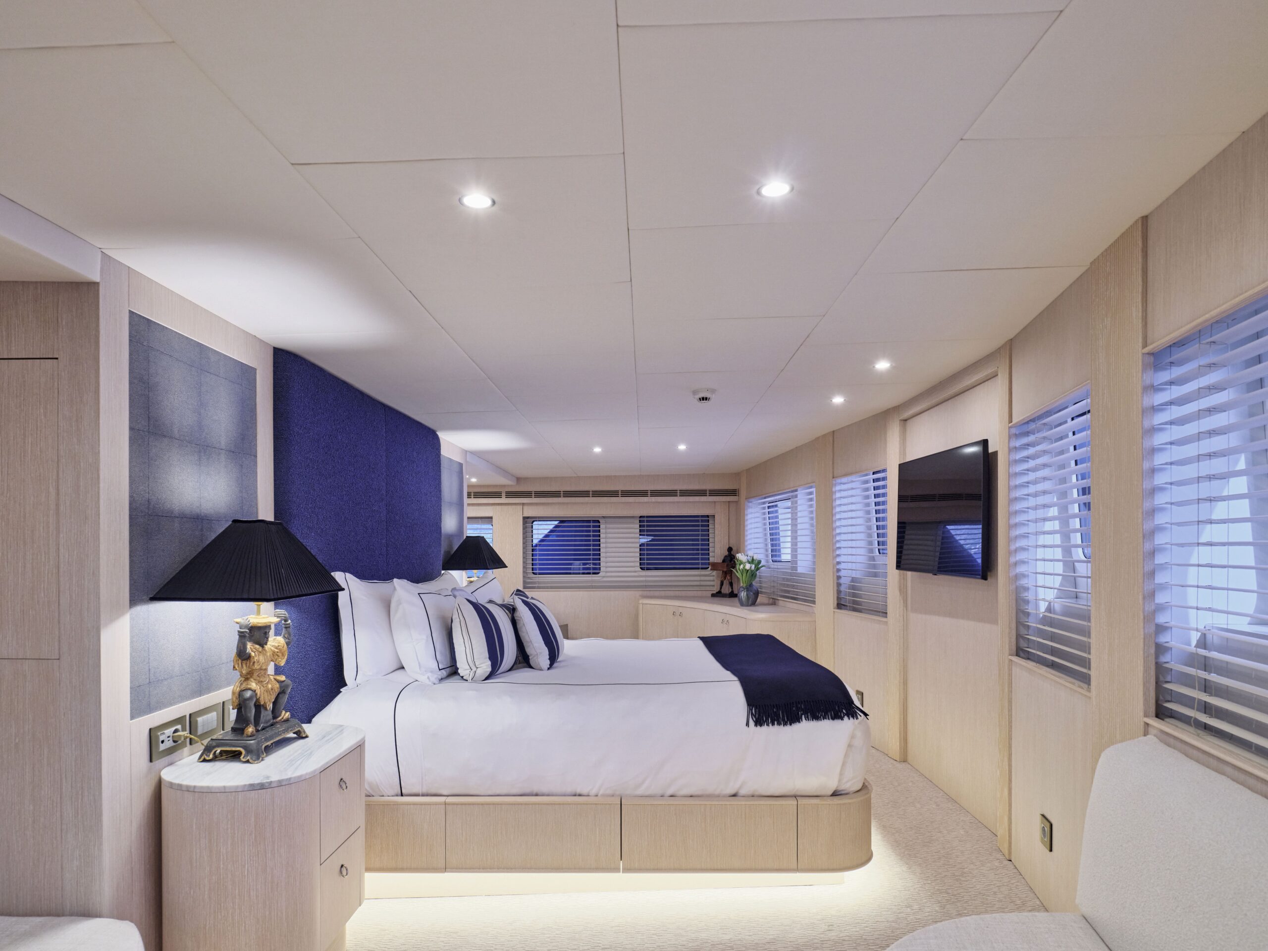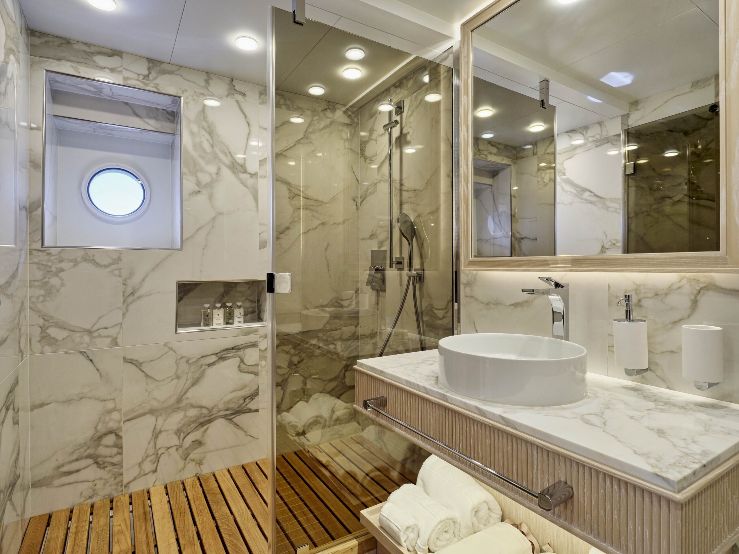 OMNIA’s versatile interior layout means she is capable of carrying up to 16 guests across eight luxurious cabins including a master suite, VIP suite and five double cabins. She also has additional accommodation for a 20-person crew to ensure impeccable service for you and your guests at all times.