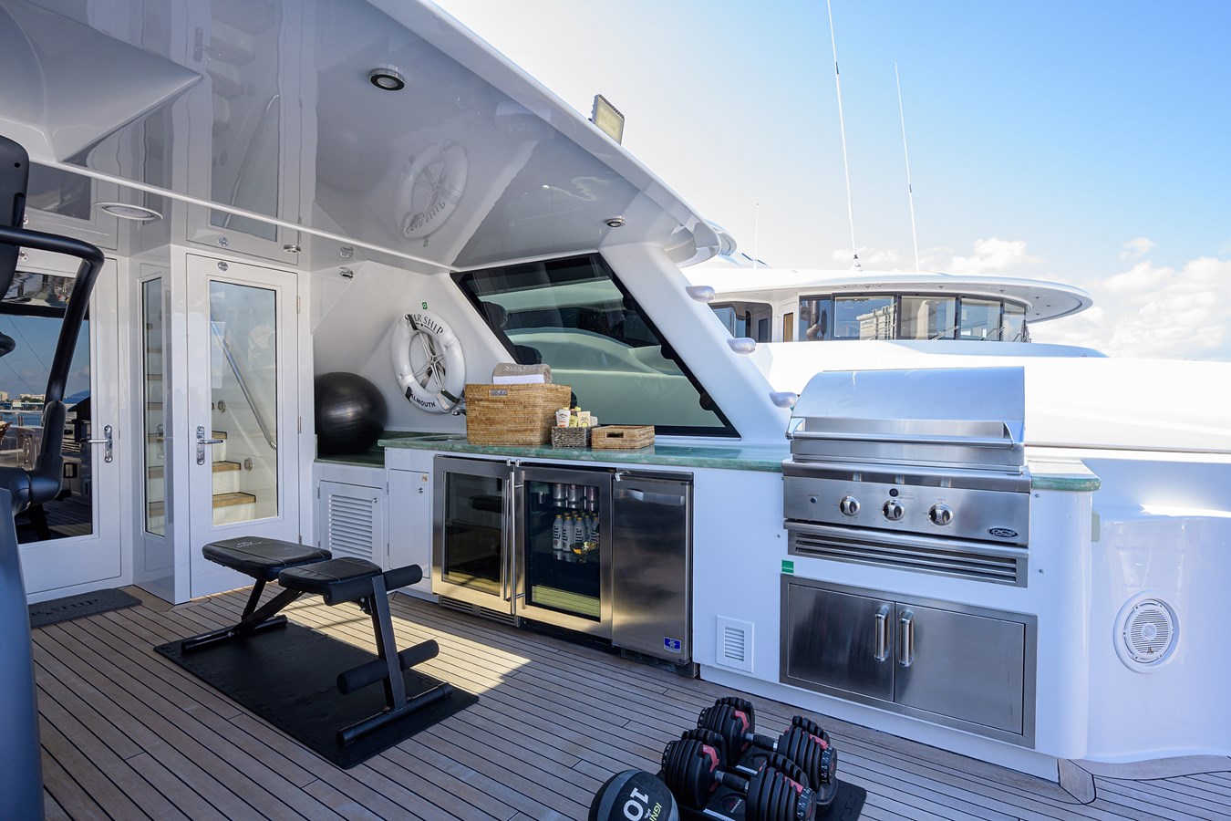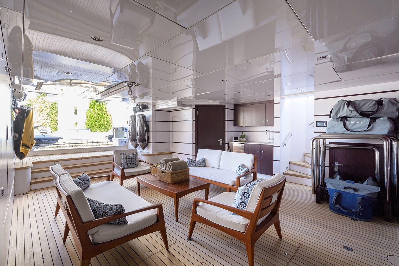 STARSHIP features a spacious beach club that can double as storage space for a tender or water toys.